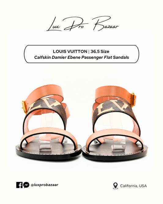 LOUIS VUITTON | Calfskin Damier Ebene Passenger Flat Sandals